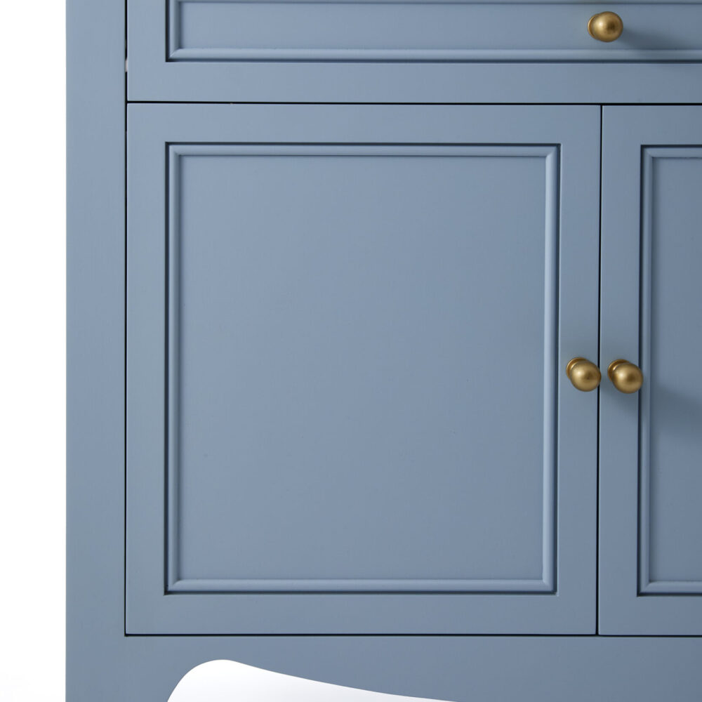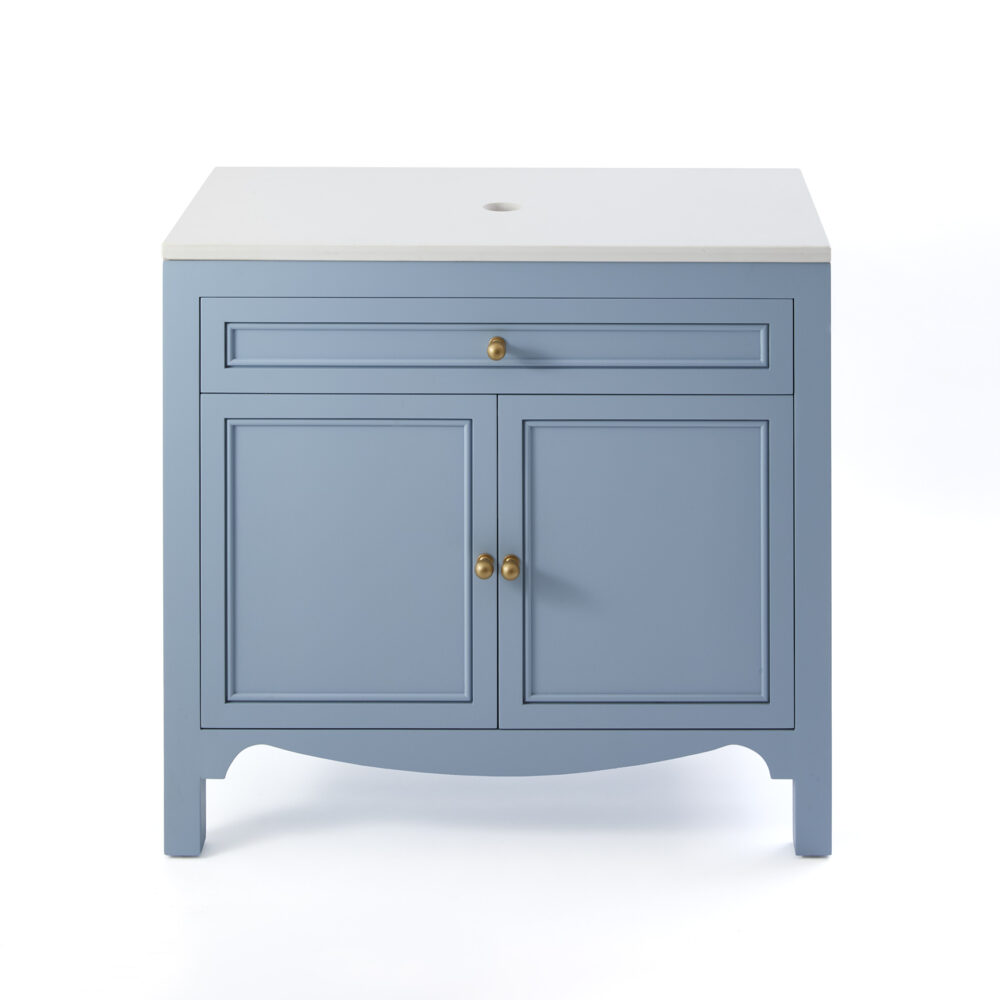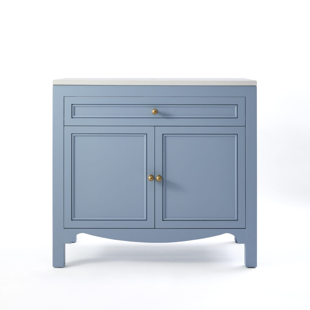 The Archer vanity is a classic shaker style design with an elegantly curved decorative base to perfectly suit any bathroom or cloakroom. Understated and timeless, the Archer is a versatile option with a generous amount of storage which will suit any bathroom or cloakroom. The Archer can be made in a bespoke size to order, ensuring it fits flawlessly within any space without compromise. It is fitted with solid oak dovetailed drawers boxes, soft close door hinges & drawer runners and solid brass knobs which make this vanity a pleasure to use.