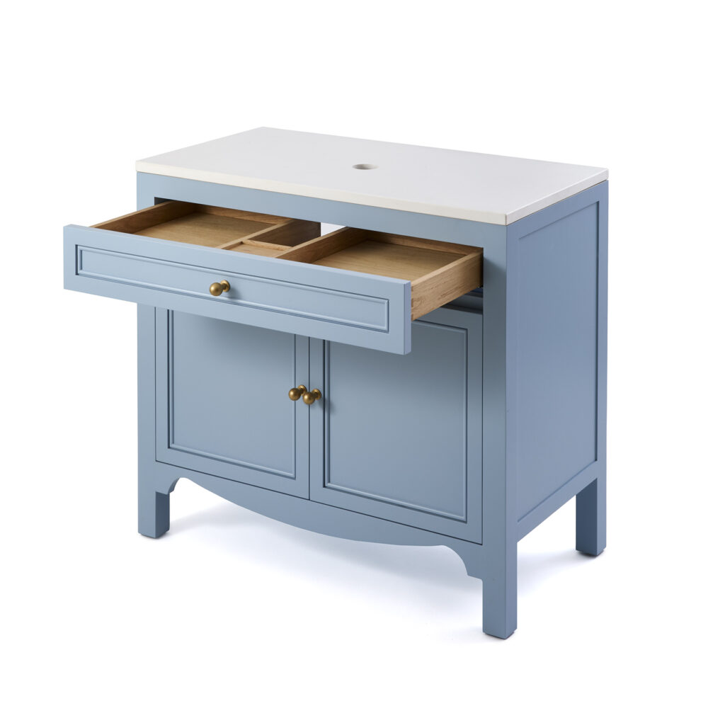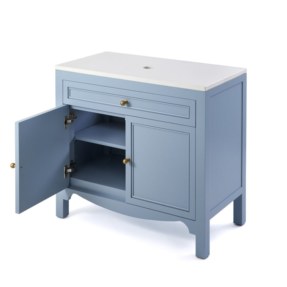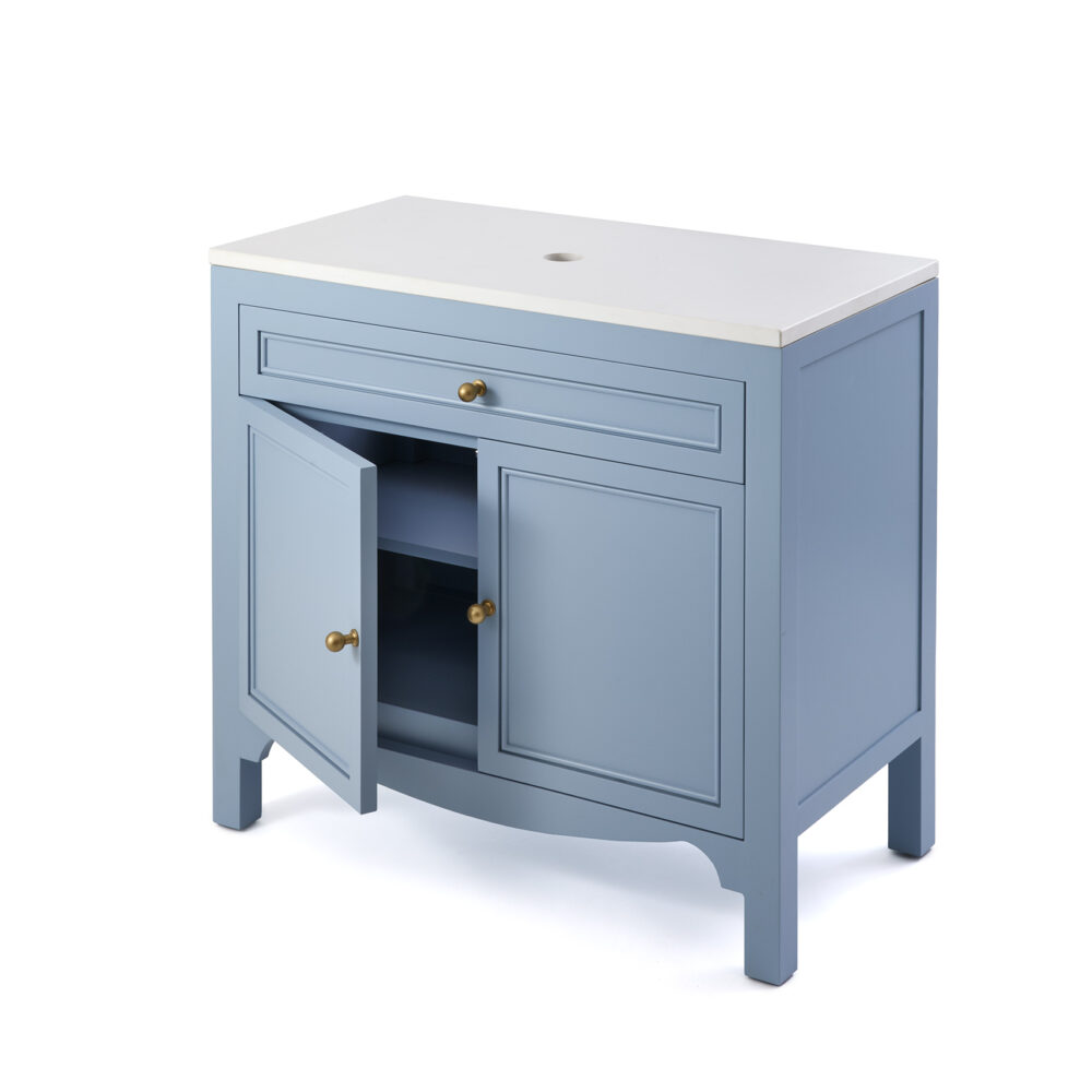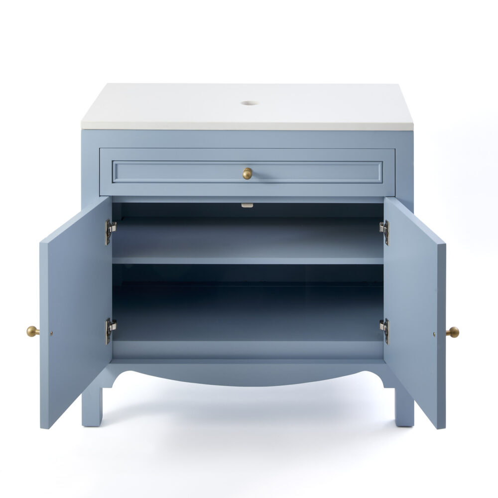 The Archer vanity is a classic shaker style design with an elegantly curved decorative base to perfectly suit any bathroom or cloakroom. Understated and timeless, the Archer is a versatile option with a generous amount of storage which will suit any bathroom or cloakroom. The Archer can be made in a bespoke size to order, ensuring it fits flawlessly within any space without compromise. It is fitted with solid oak dovetailed drawers boxes, soft close door hinges & drawer runners and solid brass knobs which make this vanity a pleasure to use.