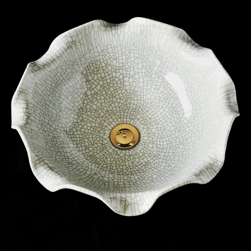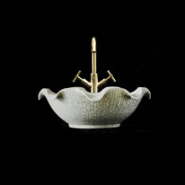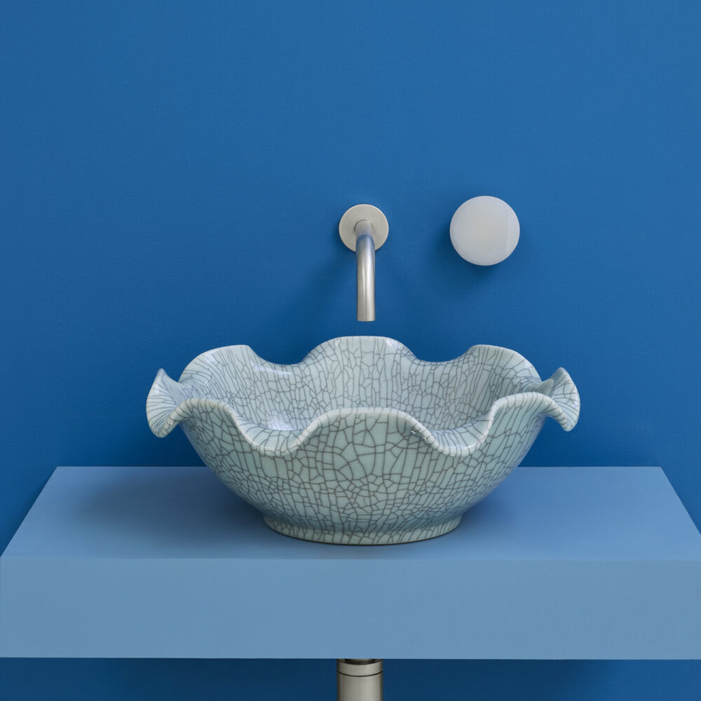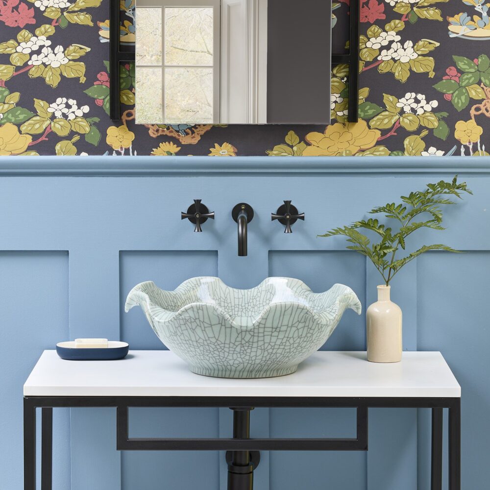 With its soft greeny-blue colour, hand finish, exquisite craftsmanship and nod to traditional Asian celadon ware, the Celestine unites a beautiful floral shape with a distinctive crackle glaze. Both elegant and versatile, it works just as well with modern accessories as it does with traditional brassware when completing the bathroom of your dreams.