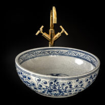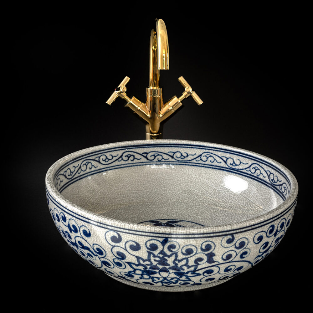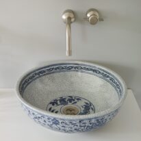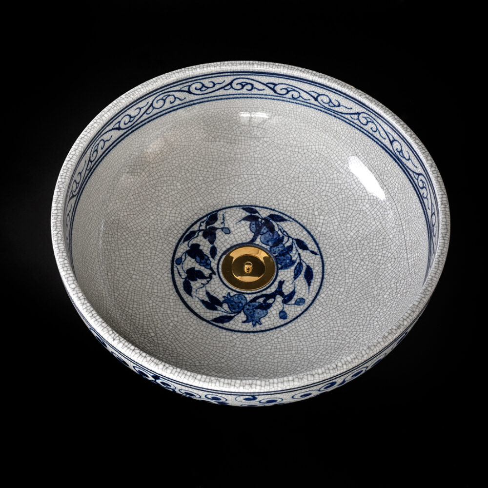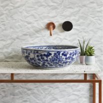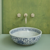 Contact usHand-crafted in blue and white with a distinctive crackle glaze, the swirl pattern lends the Coralie basin a fresh yet classic quality