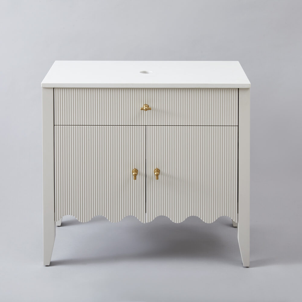 Contact usAn elegant design incorporating a modern and playful frame, with two reeded doors and one reeded drawer providing you with the ultimate storage space, and a distinctive scalloped edge
