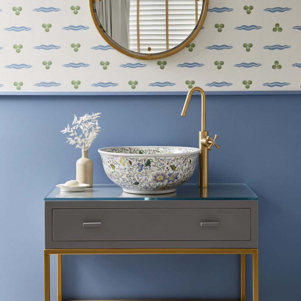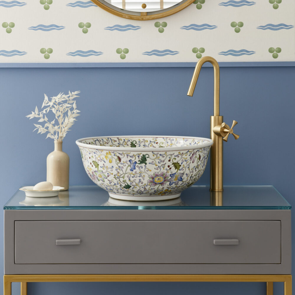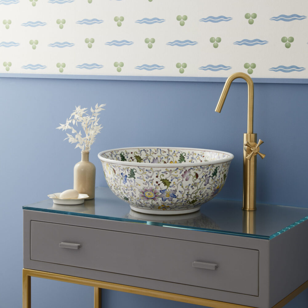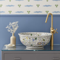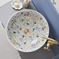 Conjuring the image of an English summer garden in full bloom, the Florentine countertop basin features a trailing pattern of pretty, blossoming flowers. In line with the trend for botanicals prints, it uses a muted palette of blues, greens, yellows and pinks, adding a soft, delicate touch to bathrooms and cloakrooms.