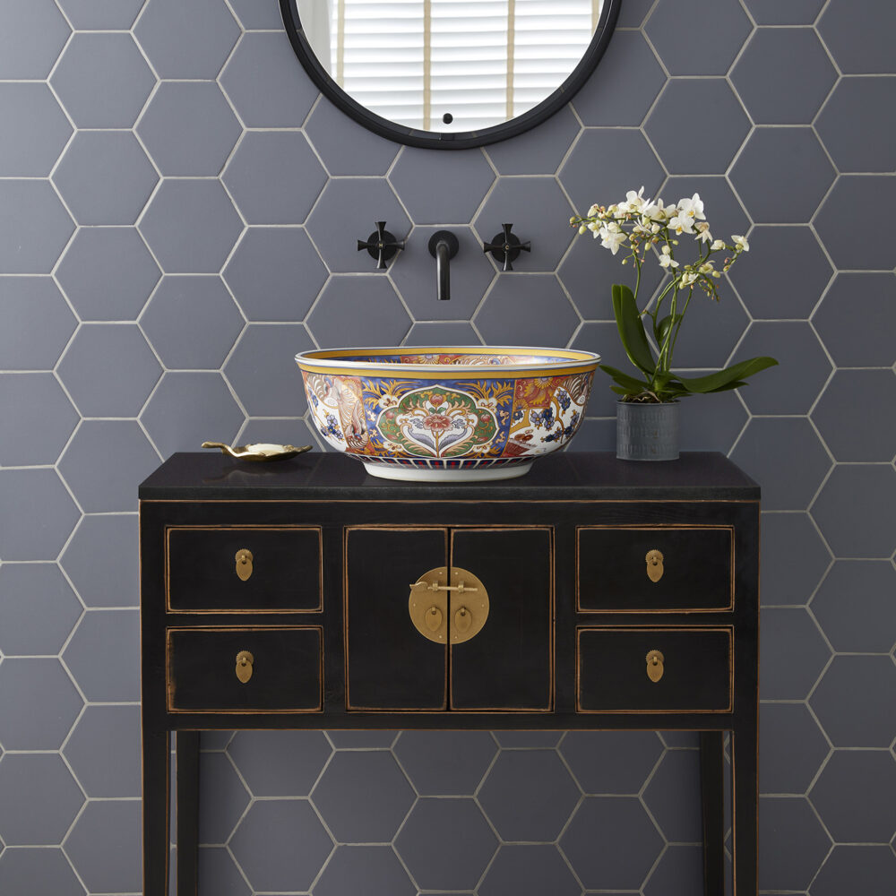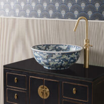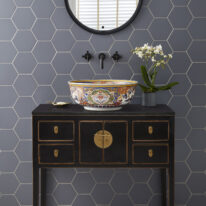 Contact usInspired by ancient Chinese wedding cabinets, the sleek Huxley vanity unit offers bathroom storage that will make a stunning impression on your space