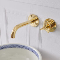 Elegant and contemporary with an industrial feel, the 2 hole Jasper basin tap in Polished Gold is a distinguished tap built with efficiency and longevity in mind. With its luxurious but minimalist design, this innovative wall-mounted tap features a single mixer that controls both hot and cold water and a swivel mechanism to control water flow. The Jasper tap has also been designed to work with both our standard and mini basins with a 175mm spout length and is an ideal space saving solution for smaller bathrooms & cloakrooms. The Jasper is crafted from solid brass with a polished gold finish which brings a touch of understated style to any bathroom which is also easy to maintain.