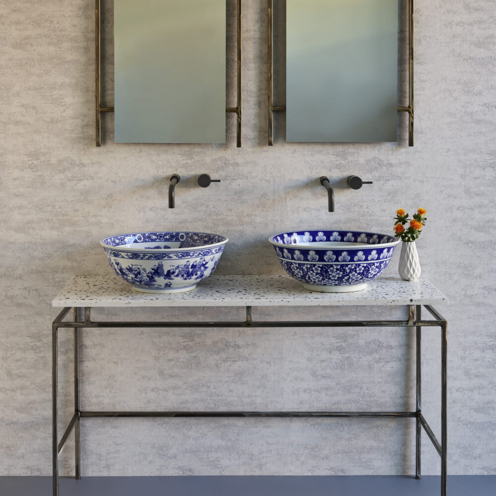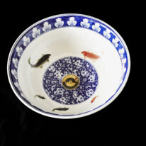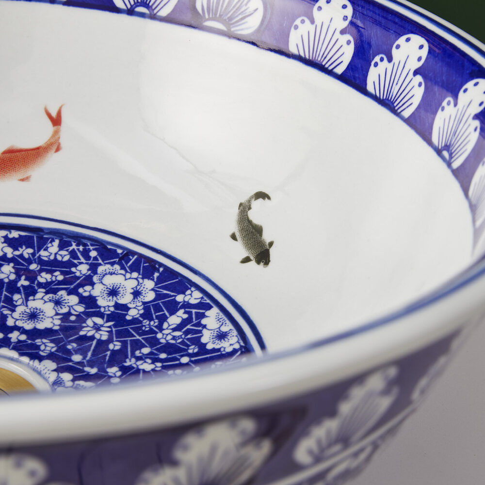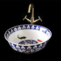 Add a touch of Eastern good fortune to your bathroom. Taking its cue from decorative Oriental porcelain, the inside of the Lorelei countertop basin features a distinctive fish and lotus blossom motif –both traditional symbols of wealth and abundance. From the outside, a classical white-on-blue floral pattern lends it a touch of elegance to elevate your bathroom space. The Lorelei is also available with or without the fish detail and in a scalloped design.
