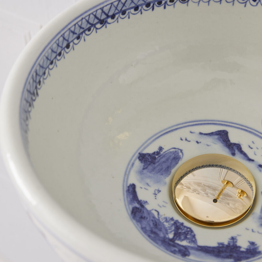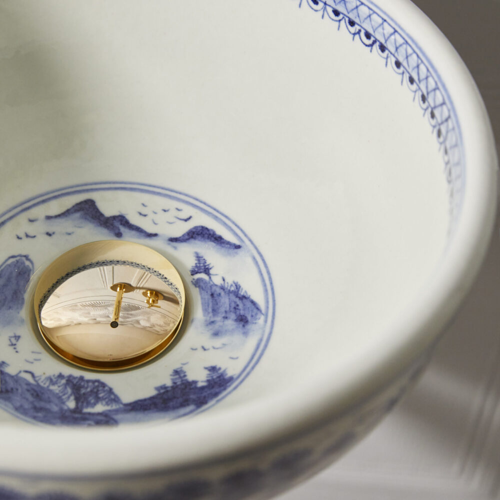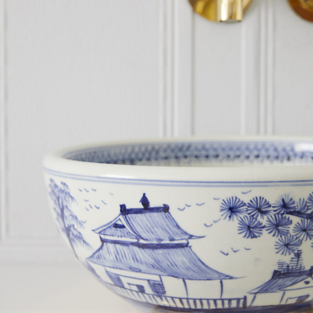 Hand-painted with the utmost skill, the Eloise showcases a series of serene East Asian landscapes, featuring traditional dwellings, mountain ranges and wildlife. In classic blue & white, this elegant mini basin is deliciously detailed; a peek inside reveals an intricate decorative border at the rim, with more delightful scenes circling its base. A true work of art, it is sure to create an impressive centrepiece for bathrooms and cloakrooms.