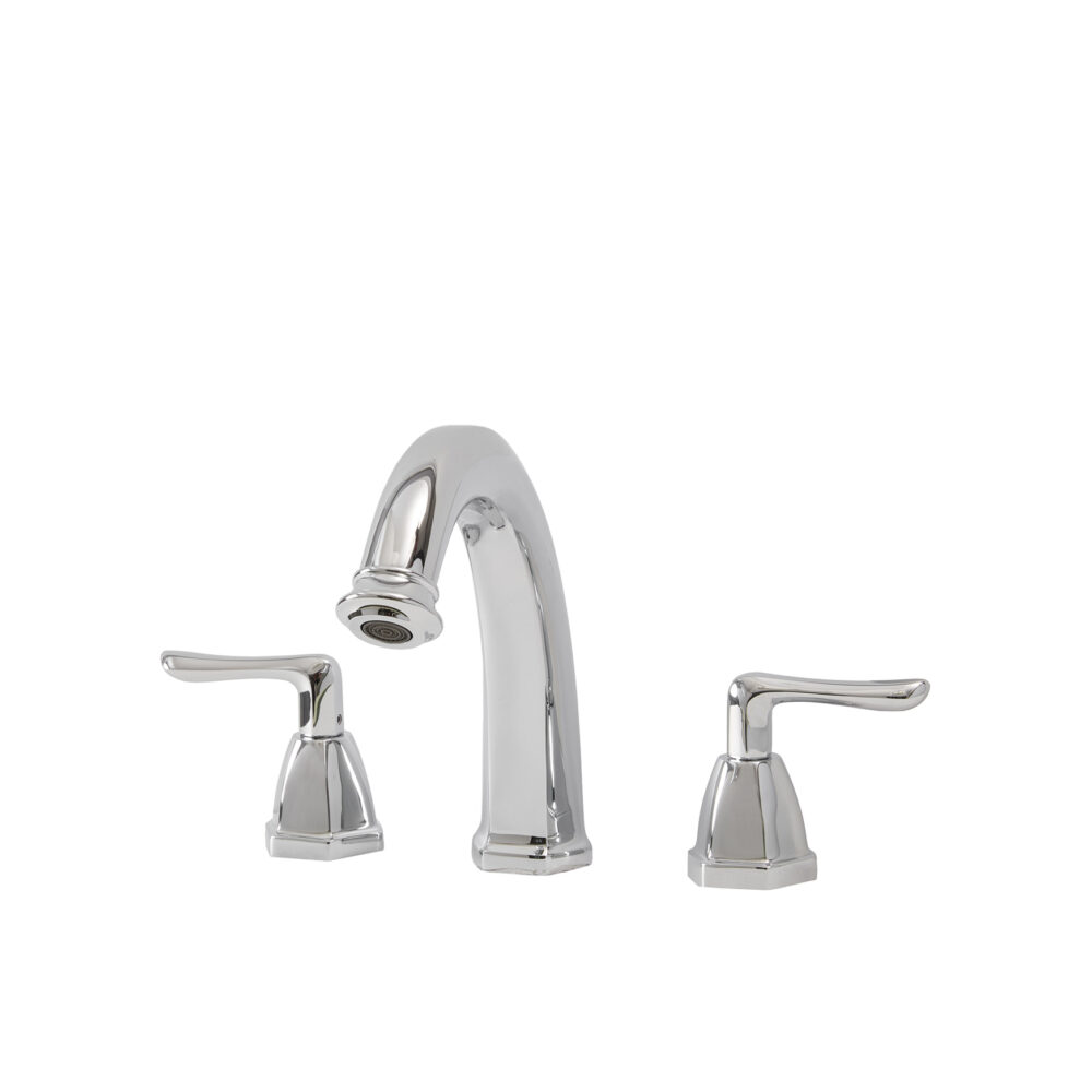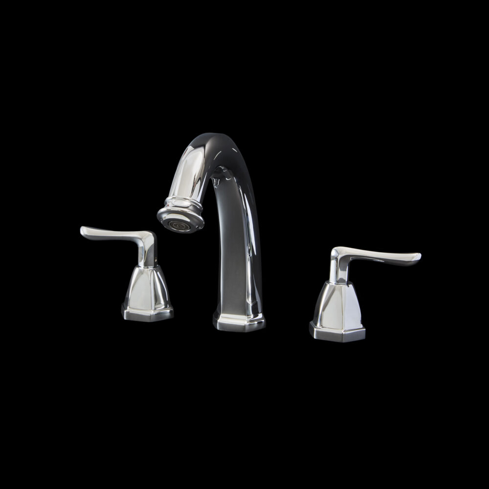 The 3-hole deck-mounted Monty tap in Polished Chrome features a graceful swan neck, a pair of stylish lever controls and a bold geometric base. The Monty tap is crafted from solid brass and is PVD coated for high durability, easy maintenance and a flawless Polished Chorme finish.