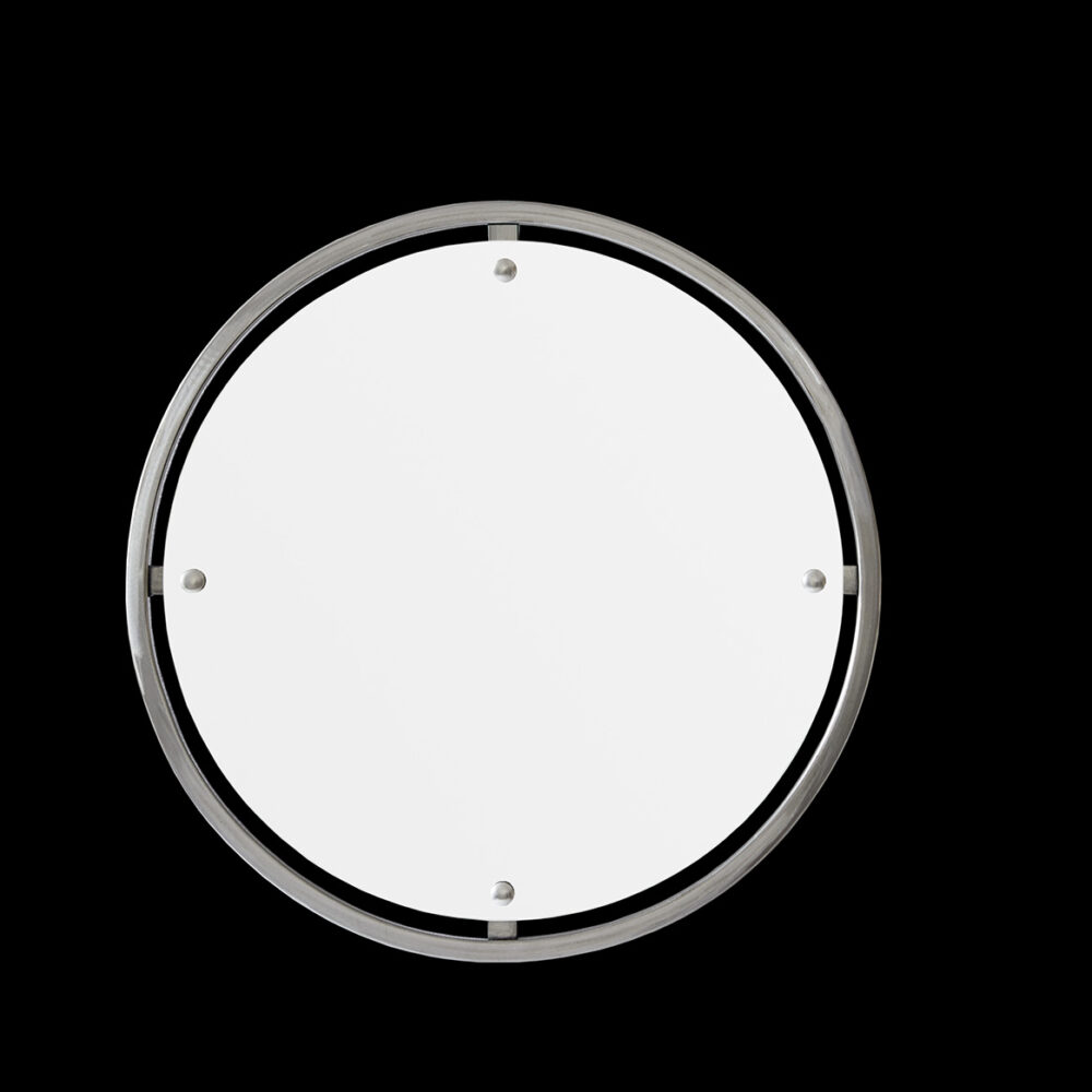 The Otto mirror is a round mirror featuring a chic, industrial steel rim and four decorative studs in an industrial steel finish. Handmade in durable steel, it is a practical piece that also brings good looks to bathrooms and cloakrooms.
