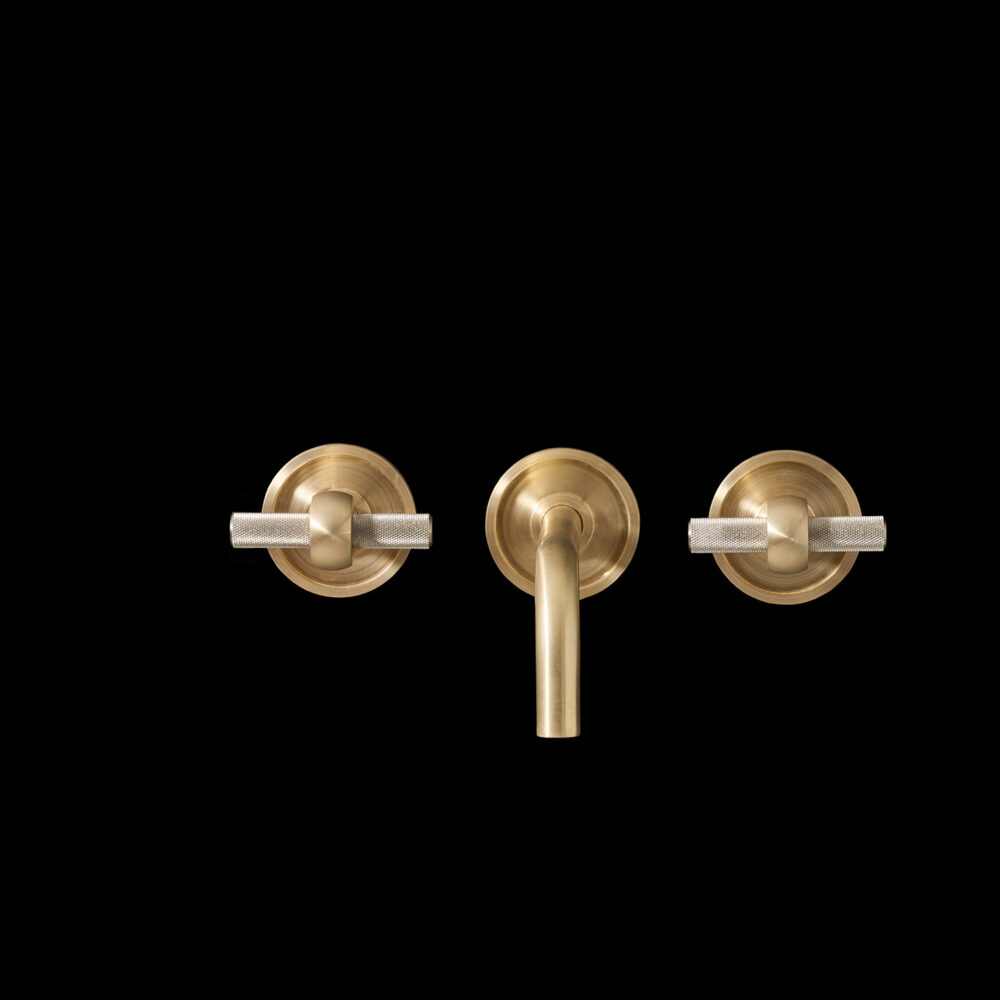 The 3 hole wall-mounted Reuben tap offers a completely new look for bathrooms & cloakrooms. The distinct brushed brass wall-mounted tap features a contemporary ‘bar’ mixer design and a unique mixed metal finish, showcasing a striking combination of knurled nickel and brushed brass. With a distinctly sophisticated yet industrial feel, the Reuben tap is a modern and exciting alternative to taps and is sure to enliven any bathroom. The Reuben tap has been built with efficiency in mind and a lacquered finish allows for easy maintenance. It has been designed to work with our standard basin range.